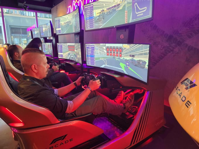 It wasn’t all AI and learning at this year’s event: we had a little fun too. On night one, the crew headed to the Formula 1 Arcade in South Boston for an evening of head-to-head races, networking, and cocktails.