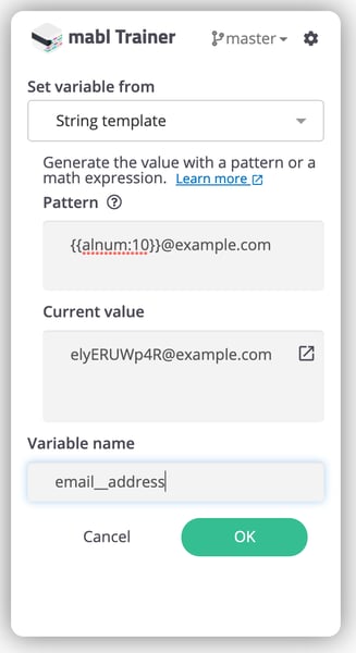 Rather than hard-coding values into all of your test steps, variables provide you with a more flexible and efficient way to generate, store, manipulate, and use strings and numbers. Rather than hard-coding an email address that you use three times in a test, for example, you can create an “email_address” variable and reference the variable in each of the three steps. If you want to update the email address for the test, you only need to update it in one place - the variable definition.