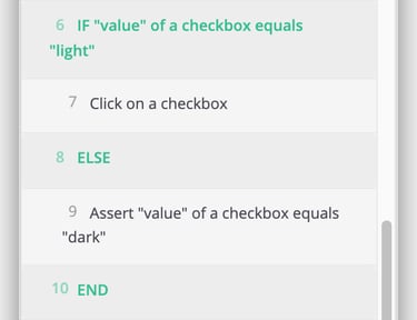 In code, conditionals enable your code to decide which actions to take depending on whether an expression evaluates “true” or “false.” Similarly, you can use If/Then statements in mabl to specify which step(s) a test should execute based on the output of an expression. Imagine, for example, that you want to ensure that a checkbox in your app is set to a certain state before you end the test. You can create a simple conditional to check the state and reset it if it is not in the desired state.